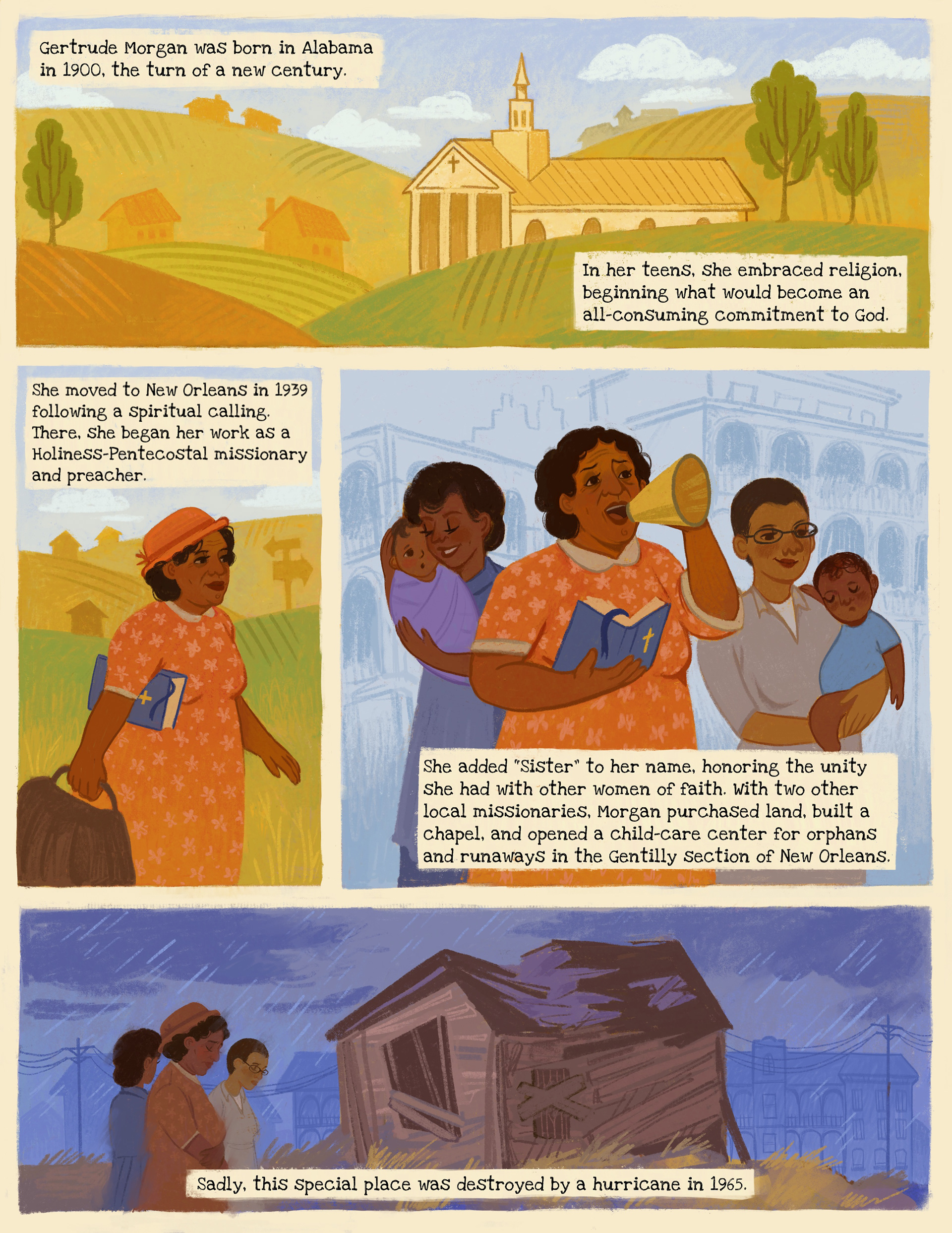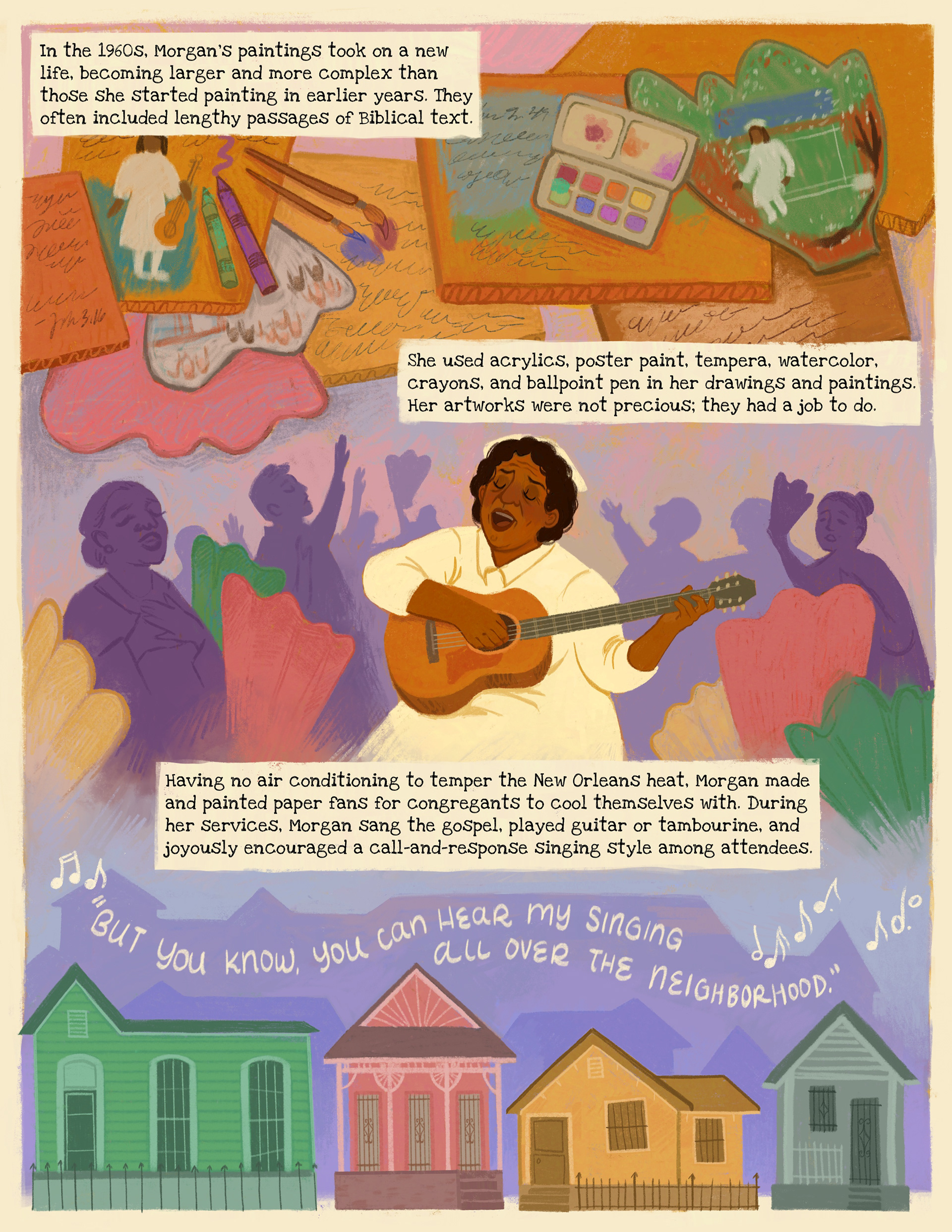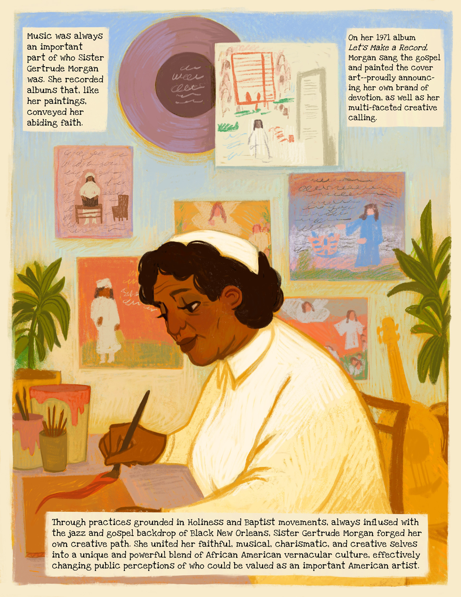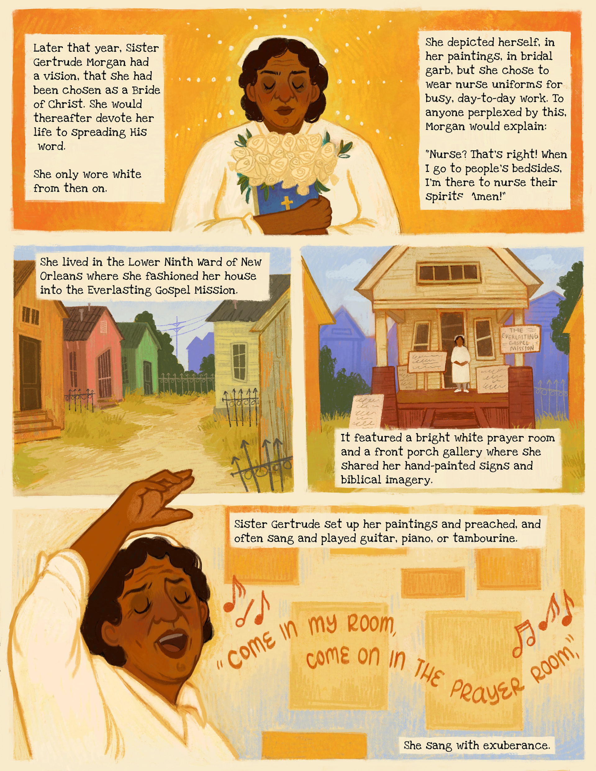 I Illustrated a six-page comic in collaboration with the Smithsonian American Art Museum about the life of a famous historical figure, Sister Gertrude Morgan, as part of their Drawn to Art: Tales of Inspiring Women Artists collection. Read more about the project here!